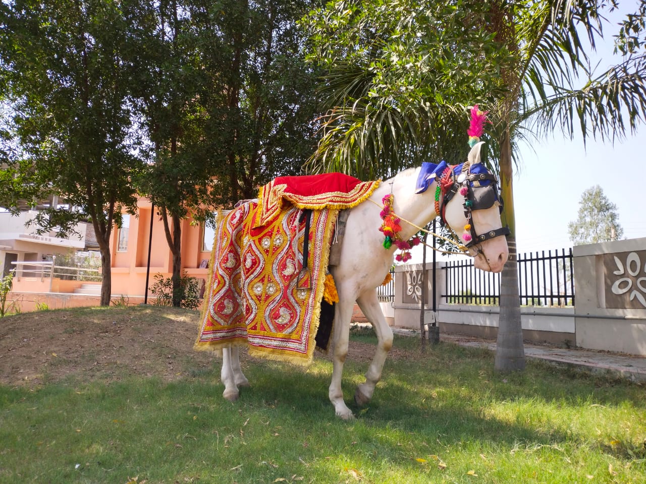 The Ghodi Baggi Services offer a traditional and royal wedding experience with the groom arriving on a beautifully adorned horse (Ghodi) and a decorated carriage (Baggi).